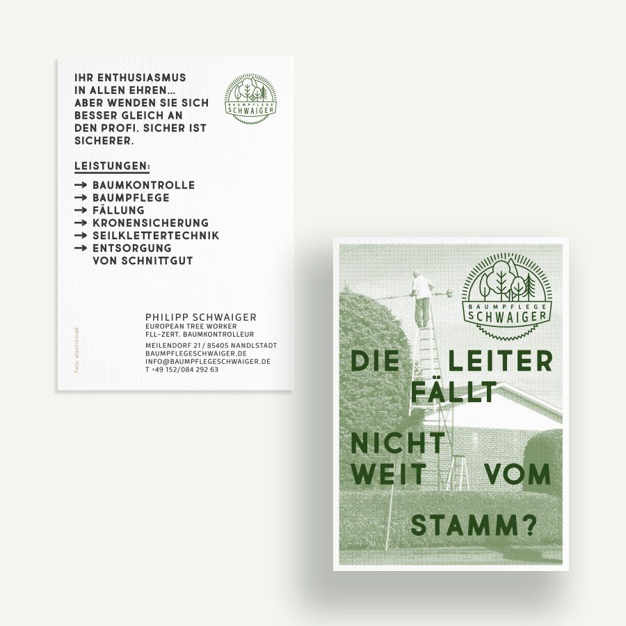 Für den Baumpfleger Philipp Schwaiger entwickelte ich ein Logo mit Farbkonzept.